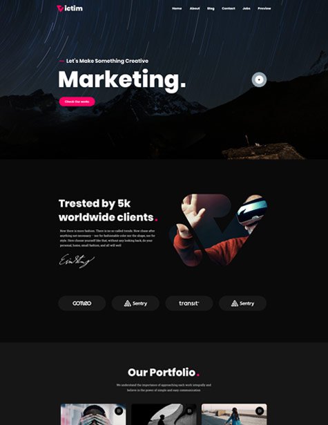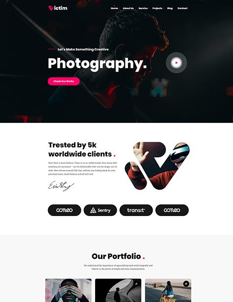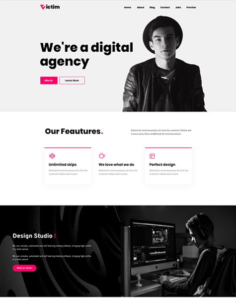 Victim WordPress theme comes with 06 homepage which interact your client